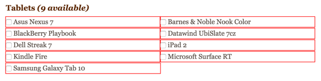 <input type="checkbox" name="devices[]" value="Asus Nexus 7" />